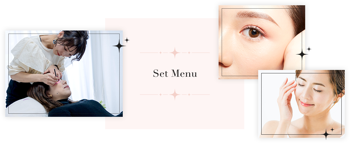 まつ毛パーマとお好きな施術を併せて受けられる、一石二鳥なメニューです。 しっかりと目元・お顔のメンテナンスを行いたい方にオススメ!